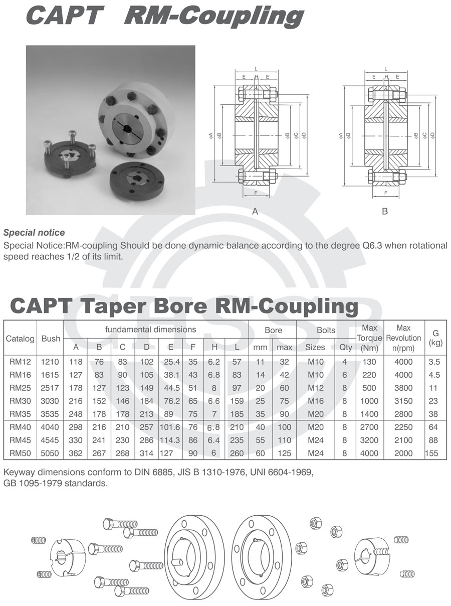RM聯軸器工作時轉速超過它最大轉速的1/2,訂貨時須特別聲明。