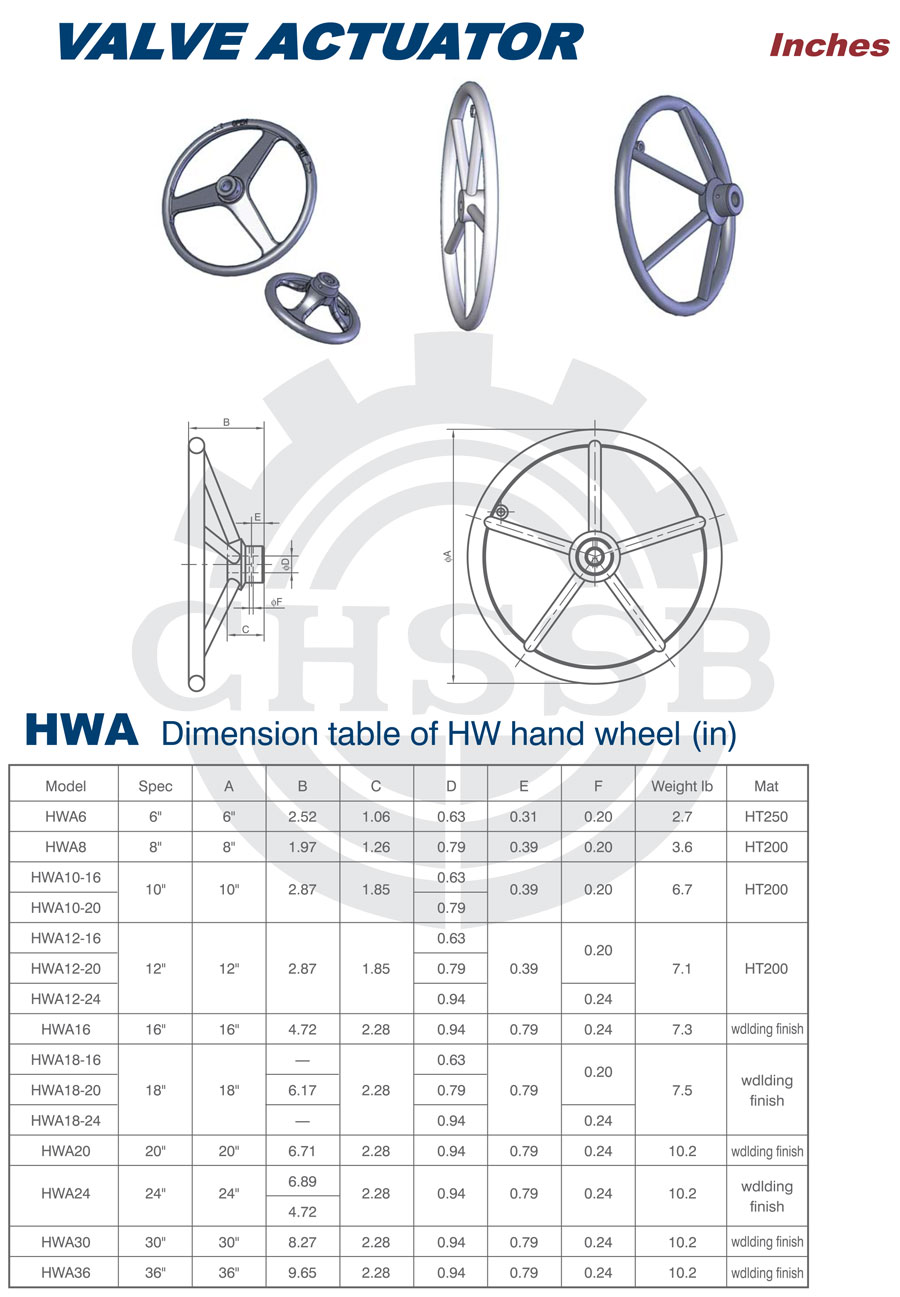 產品范圍: 美標:(HWA) 歐標:(HW) 英制尺寸產品(適用于美標市場) 公制尺寸產品(適用于歐標市場) 閥門驅動器